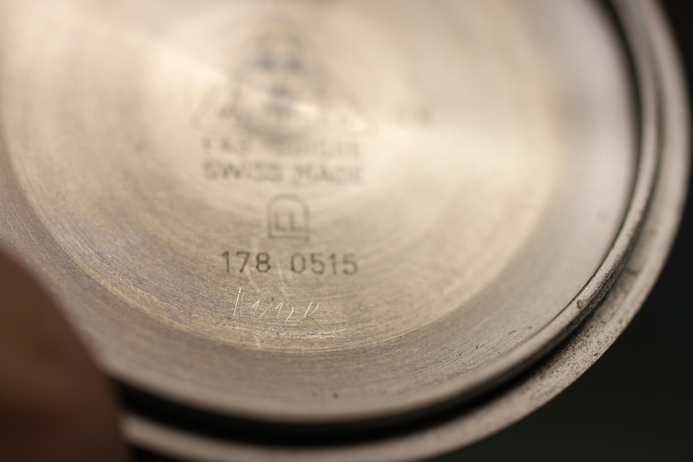 Die letzte Revision hat kein überzeugendes Bild hinterlassen, hier hat der Uhrmacher sogar etwas in den Gehäuseboden eingeritzt.