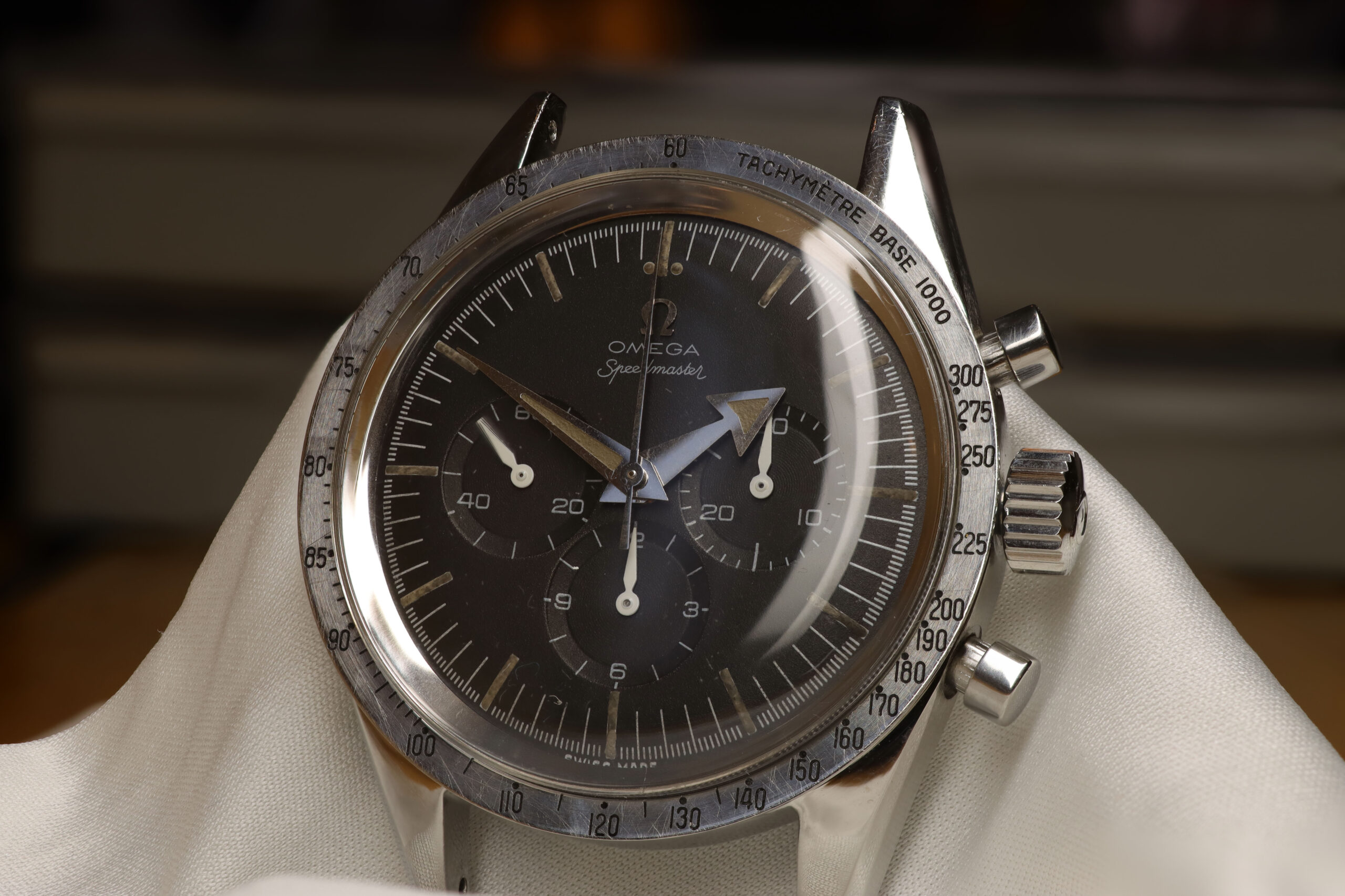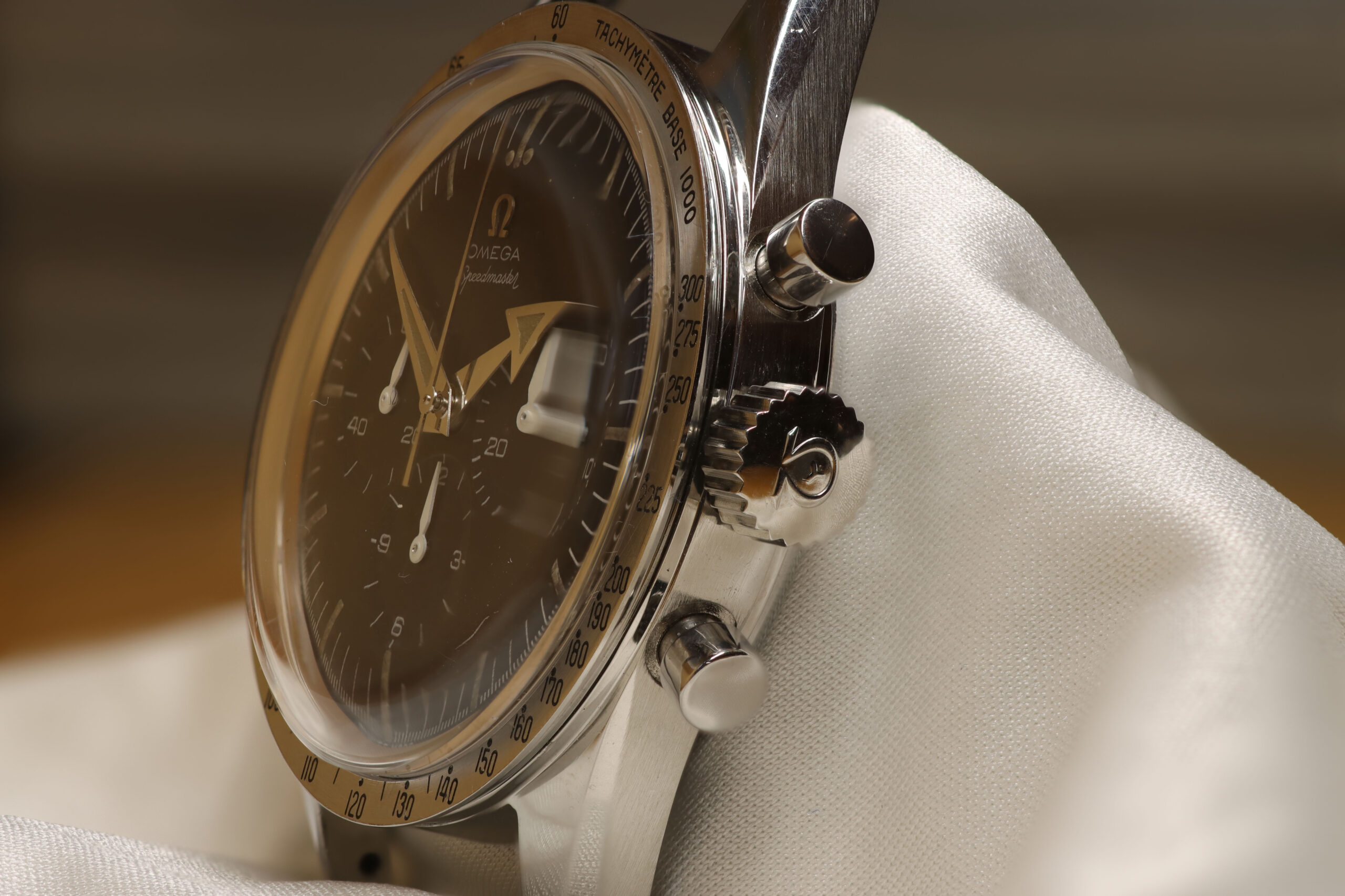 Komplette Wartung mit Feinrevision, Wasserdichtigkeitsservice, Gehäuseaufarbeitung und neuem Glas einer Omega Speedmaster Professional Ref. 145.022 Kaliber 861